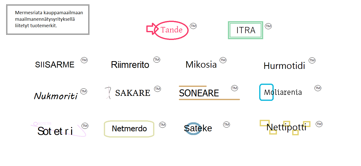 Tuotemerkkejä on siis varattu ja niiden liiketoimintaan on ostettavissa mermesriata kauppamaailmassa. Tässä on normaali lista tuotemerkeistä mermesriata kauppamaailmaan.