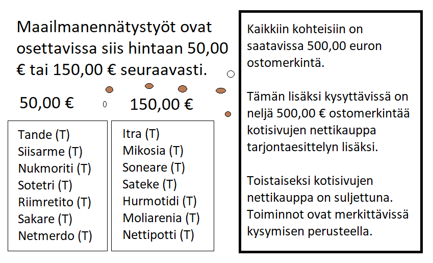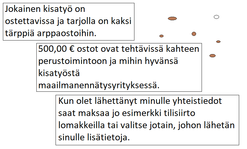 Lisäksi tarjolla on siis tämä sama 500,00 € ostomerkintämahdollisuus. Sama, kuin avaamattomassa nettikaupassakin on jo tarjolla. Hyvä osto mahdollisuus Onni Korkeaniemi tuotantoa. Ne ovat saatavissa Tuotemerkki kohtaisesti. Tosiaan tuotteita on paljon ja mahdollisuuksia on paljon. Yksi mahdollinen yhteydenotto on myös tässä. Tämä oli loka- ja marraskuussa se jännittävin yksityiskohta valmisteluja.
